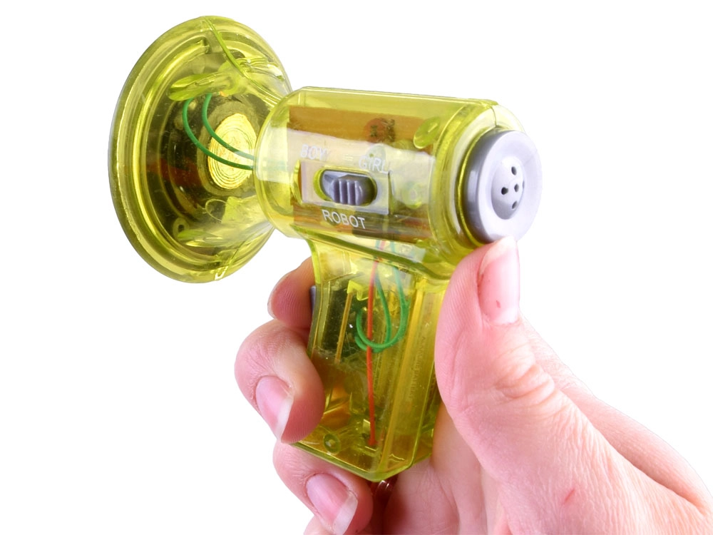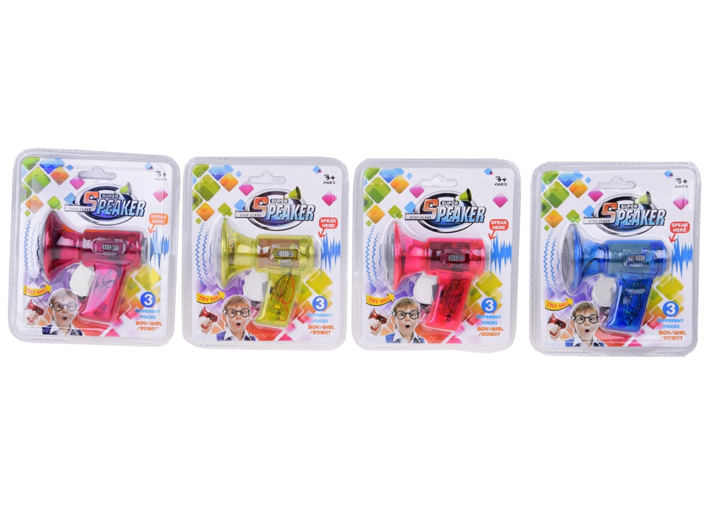 Ο αλλοιωτής φωνής είναι διαθέσιμος σε τέσσερα ζωντανά χρώματα: μπλε, κίτρινο, ροζ και κόκκινο. Έτσι, ο καθένας μπορεί να επιλέξει το αγαπημένο του χρώμα!