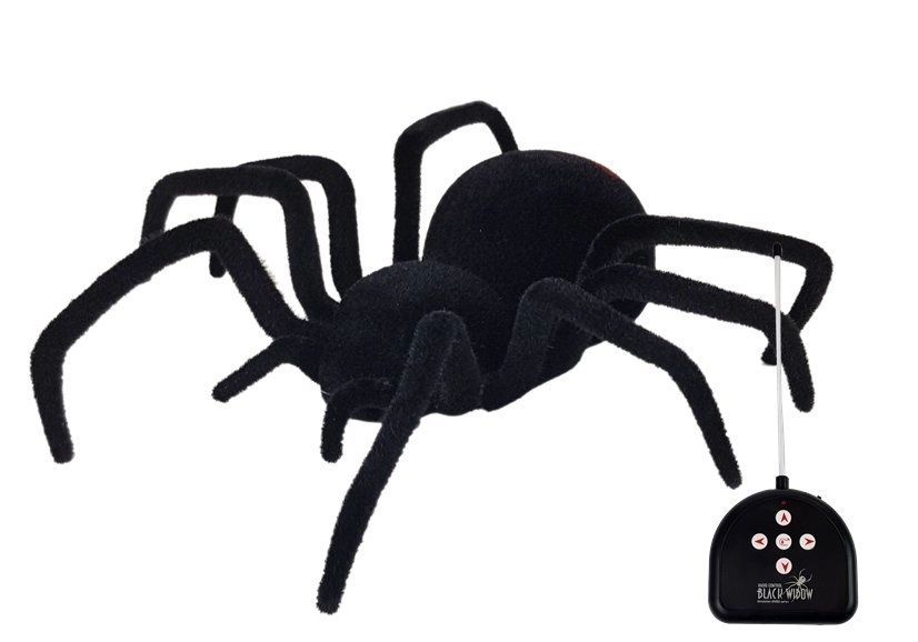 Τρομάξτε τους φίλους σας και απολαύστε ώρες διασκέδασης με την ρεαλιστική τηλεκατευθυνόμενη αράχνη Μαύρη Χήρα. Αυτή η μεγάλη τριχωτή αράχνη με κινούμενα άκρα, μπλε φωτιζόμενα μάτια και χειρισμό στη συχνότητα 27 MHz σέρνεται με εντυπωσιακά πειστικό τρόπο. Το τηλεχειριστήριο προσφέρει κίνηση εμπρός/πίσω, στροφή δεξιά/αριστερά, περιστροφή 360° και λειτουργία demo.