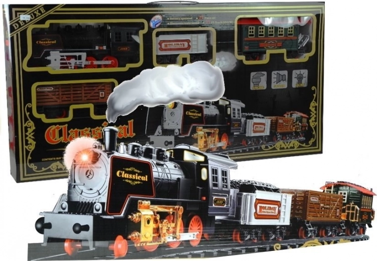 Αυτό το φανταστικό σετ περιλαμβάνει 27 κομμάτια, συμπεριλαμβανομένης ατμομηχανής, τριών βαγονιών, σιδηροδρομικού σταθμού και 22 διαφορετικών ραγών. Οι ράγες συναρμολογούνται εύκολα και επιτρέπουν διάφορους συνδυασμούς, προσφέροντας απεριόριστες δυνατότητες παιχνιδιού. Η ατμομηχανή μπορεί να κινείται εμπρός και πίσω και κατά τη διαδρομή απελευθερώνει ρεαλιστικό καπνό, συνοδευόμενο από φωτεινά και ηχητικά εφέ.