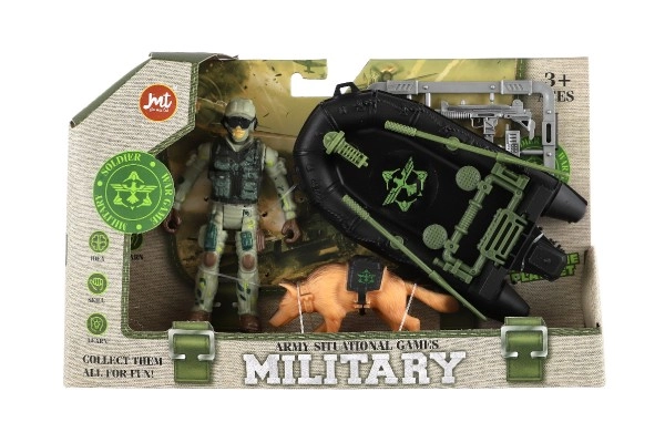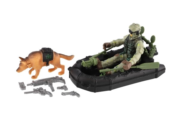Αυτό το πλήρες στρατιωτικό σετ προσφέρει στα παιδιά συναρπαστική δράση και ατελείωτα σενάρια. Η ανθεκτική φιγούρα στρατιώτη με εξάρτυση, η τακτική λέμβος και ο σκύλος-σύντροφος ενισχύουν τη φαντασία, τον συντονισμό και την ανάπτυξη αφηγηματικού παιχνιδιού. Χάρη στα αξεσουάρ, τα παιδιά μπορούν να δημιουργούν δικές τους αποστολές και προπονήσεις.