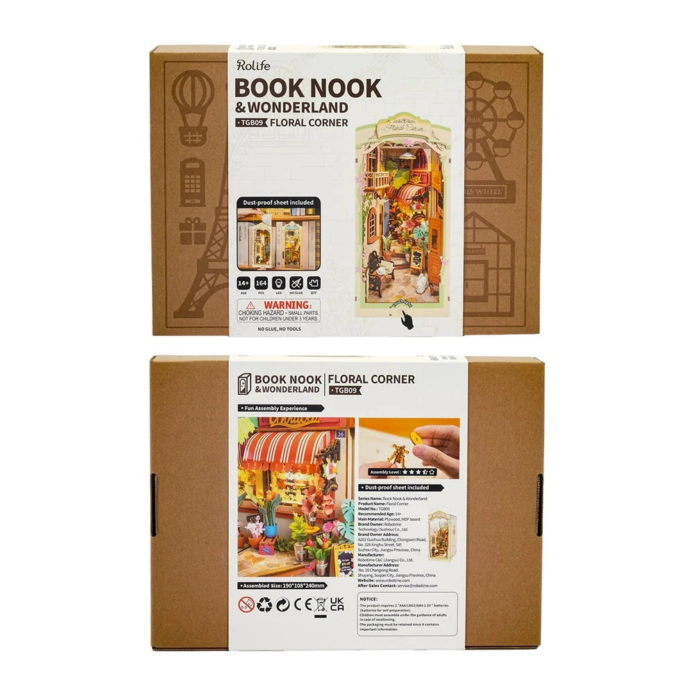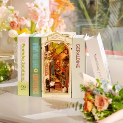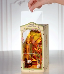 Ανακαλύψτε τη γοητεία μιας βιβλιοδρομής με ένα μινιατούρικο ανθοπωλείο, με τοίχους σκεπασμένους με κισσό, καμάρες παραθύρων, μπαλκόνι και μια γάτα που ξεκουράζεται. Τα κομμάτια είναι αριθμημένα και εφαρμόζουν με ακρίβεια, ώστε να απολαύσετε το έργο ακόμη και χωρίς εμπειρία – χωρίς κόλλα και εργαλεία. Ο ενσωματωμένος LED φωτισμός φωτίζει κάθε λεπτομέρεια και μεταμορφώνει τη βιβλιοθήκη σας σε μια ζεστή γωνιά.