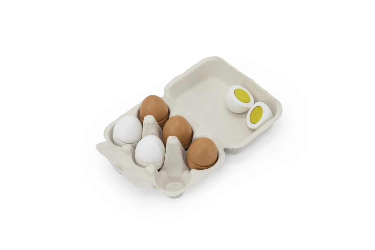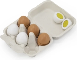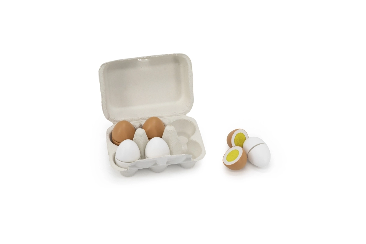 Αυτό το υπέροχο σετ ξύλινων αυγών επιτρέπει στα παιδιά να μιμούνται τους ενήλικες και να αναπτύσσουν το ενδιαφέρον τους για τη γαστρονομία. Είναι ιδανικό για παιχνιδόκουζινες ή παιδικά καταστήματα. Κάθε αυγό είναι ενωμένο με βέλκρο και μπορεί να κοπεί στη μέση, προσφέροντας στα παιδιά τη δυνατότητα προσομοίωσης μαγειρέματος. Η παιχνιδιάρικη διάθεση και η ευρηματικότητα είναι εγγυημένες!