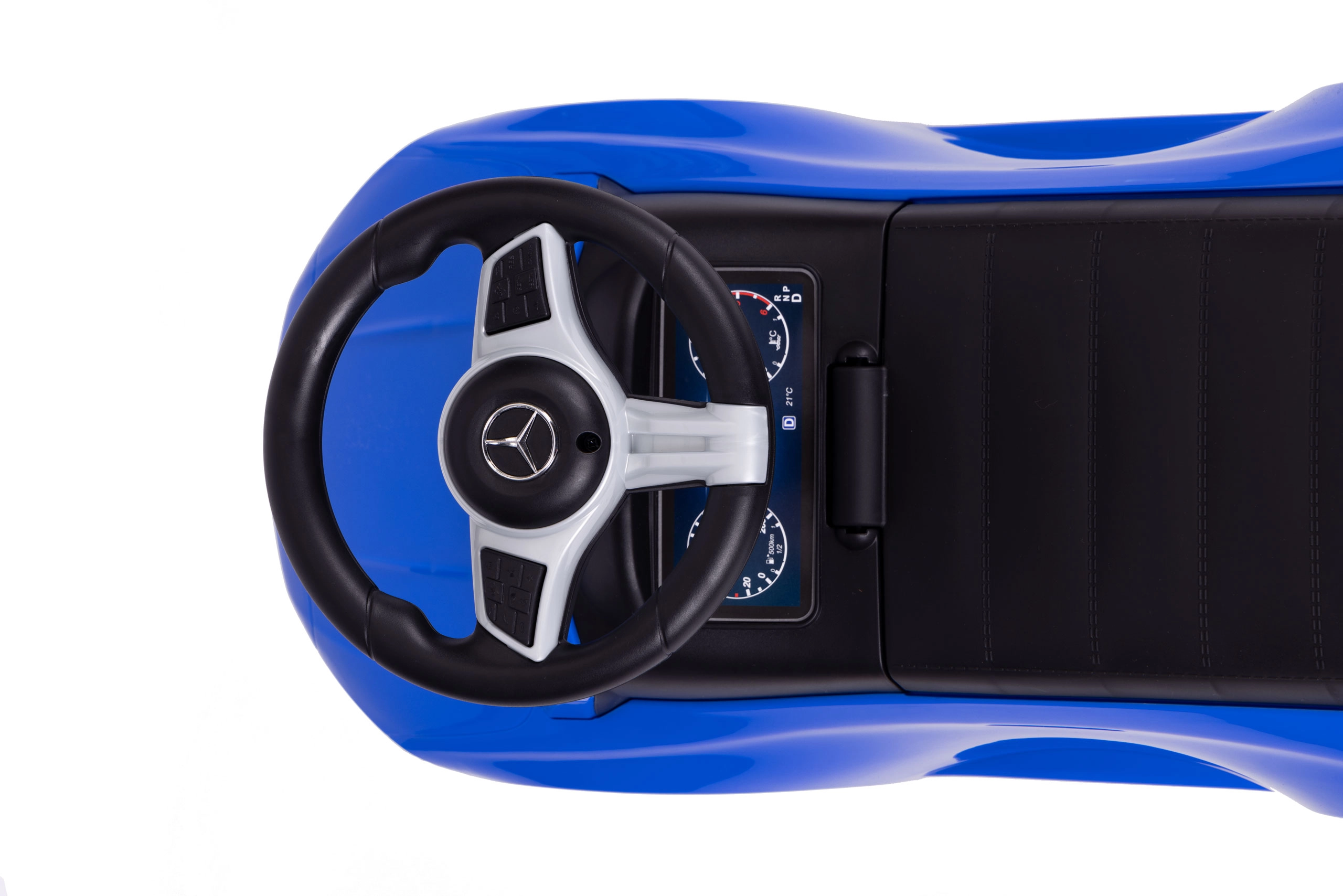 Στιλάτη περπατούρα MERCEDES C‑Class για παιδιά από 12 μηνών με αδειοδοτημένο design, σταθερή και ασφαλή κατασκευή, διαδραστικό τιμόνι με ήχους κόρνας και εκκίνησης και πρακτικό χώρο αποθήκευσης κάτω από το κάθισμα. Χάρη στην προστασία ανατροπής και την πλάτη με χειρολαβή είναι ιδανική για τις πρώτες βόλτες στο σπίτι και έξω.