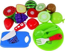 Προσφέρετε στα παιδιά τη χαρά του παιχνιδιού μαγείρων με αυτό το πολύχρωμο και πρακτικό σετ. Περιλαμβάνει ρεαλιστικά φρούτα, που μπορούν να χωριστούν με το συνοδευτικό μαχαιράκι. Ιδανικό για εξάσκηση λεπτής κινητικότητας και ενίσχυση της φαντασίας.