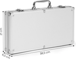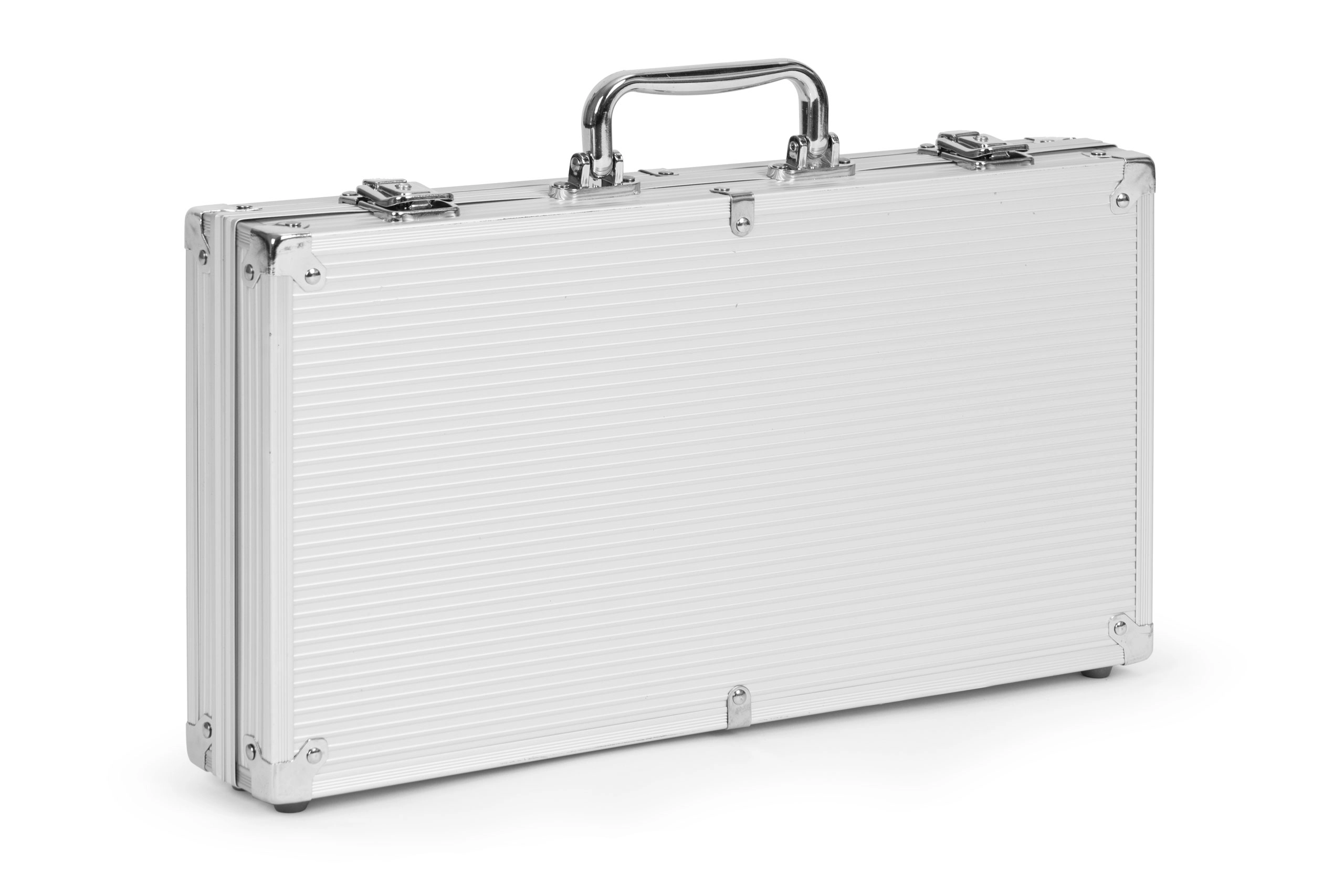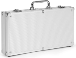 Το σετ παρέχεται σε ανθεκτικό μεταλλικό βαλιτσάκι, γεγονός που το καθιστά ιδανικό για μεταφορά. Το βαλιτσάκι κλειδώνει (περιλαμβάνει δύο κλειδιά), αποτρέποντας το τυχαίο άνοιγμα και τη διασπορά των στοιχείων του παιχνιδιού.