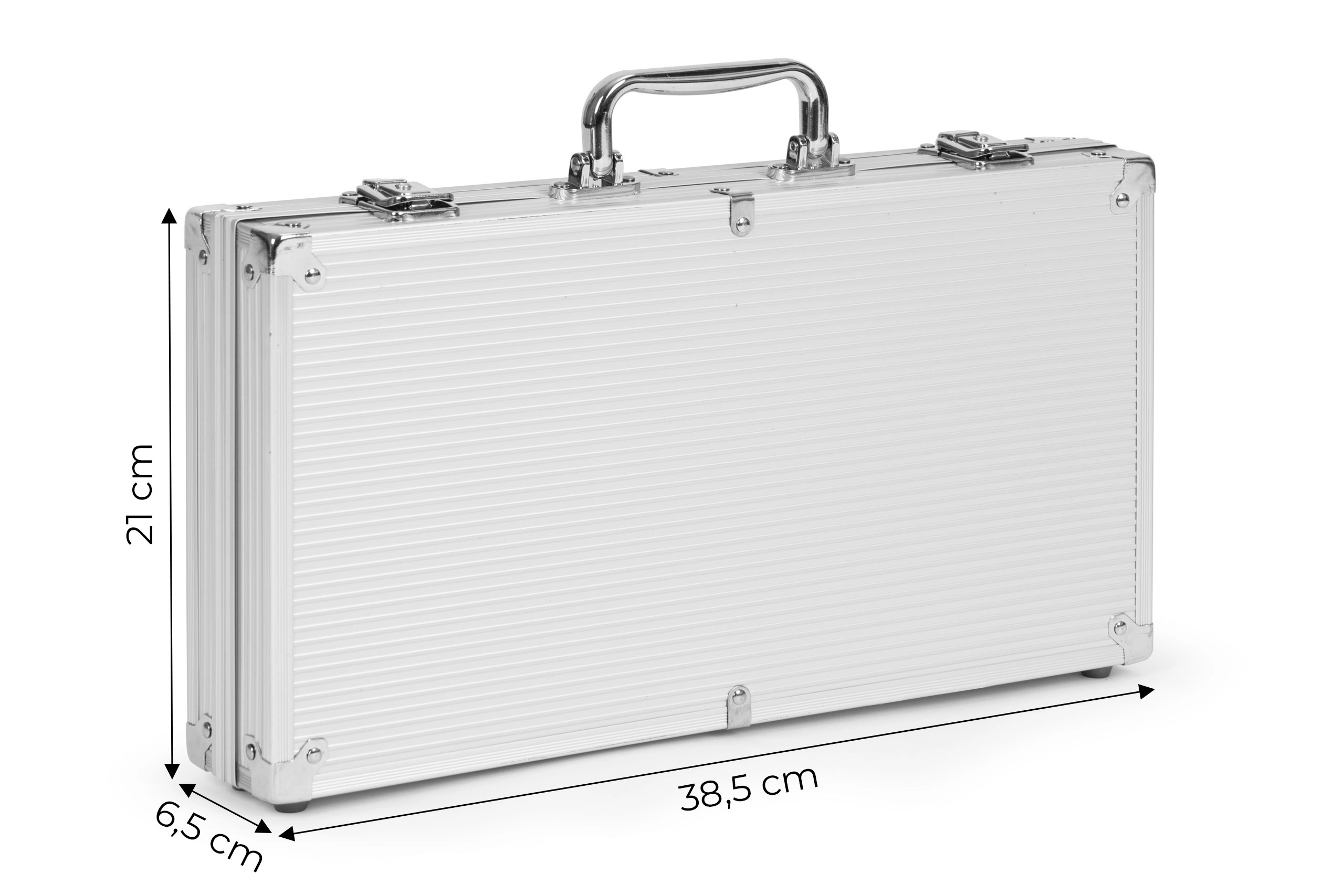 Παραλαμβάνετε ένα πλήρες πακέτο με όλα τα απαραίτητα στοιχεία για παιχνίδι πόκερ και μπλάκτζακ, όλα τακτοποιημένα σε φορητό βαλιτσάκι.