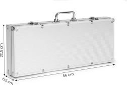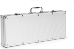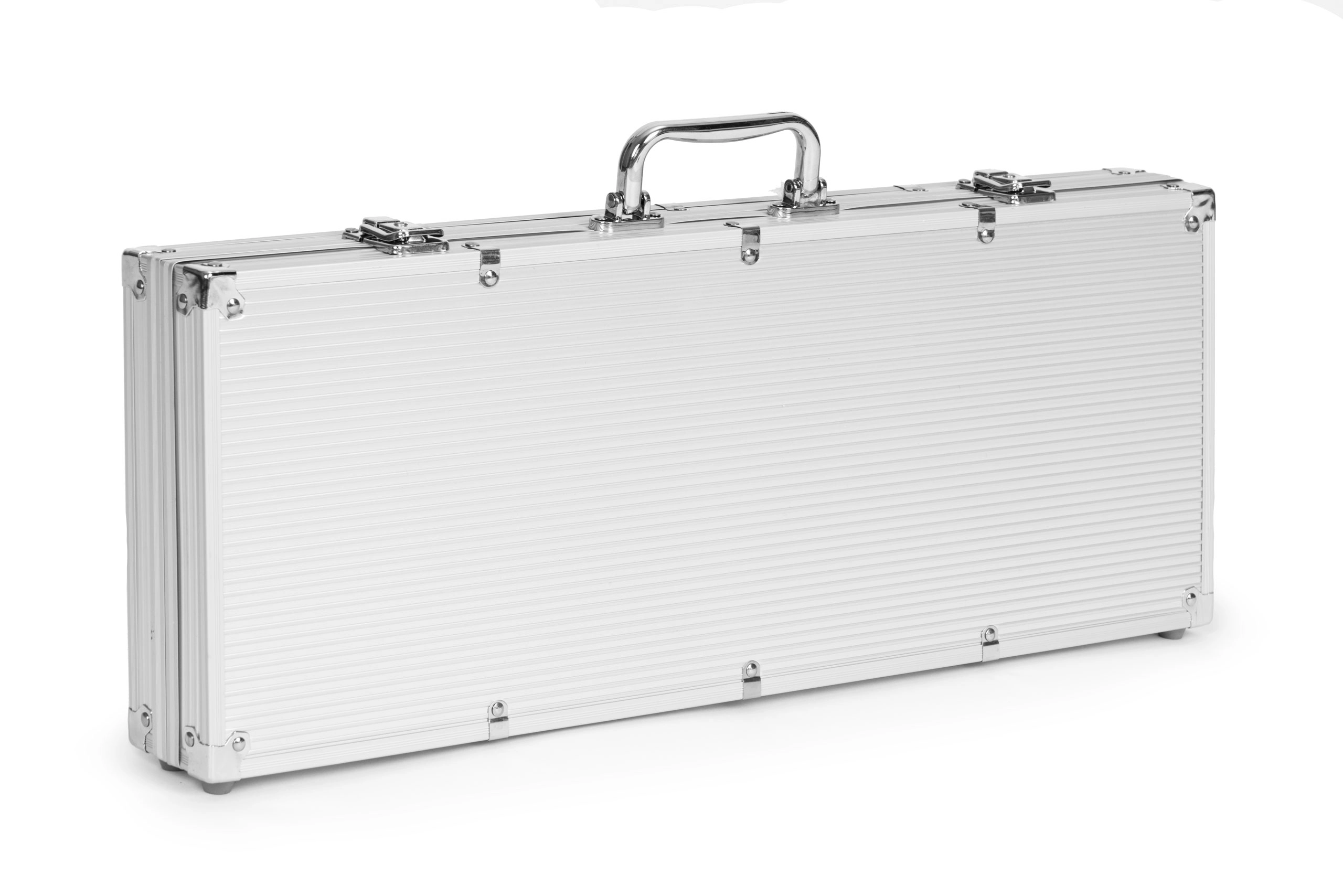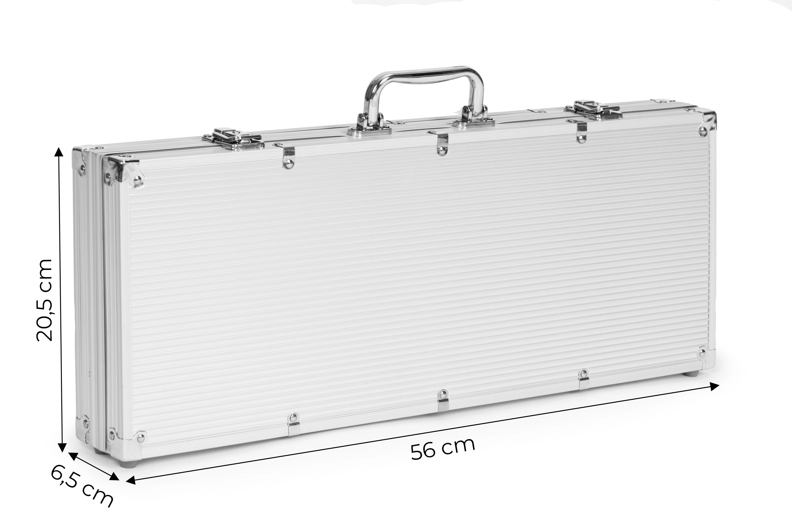 Αυτό το πλήρες σετ περιλαμβάνει όλα τα απαραίτητα για Πόκερ και Μπλάκτζακ, συσκευασμένα σε ανθεκτικό μεταλλικό βαλιτσάκι. Μεταφέρεται εύκολα σε εκδρομές ή συναντήσεις με φίλους. Το βαλιτσάκι είναι κλειδωτό (2 κλειδιά περιλαμβάνονται) για αποφυγή τυχαίου ανοίγματος και απώλειας εξαρτημάτων.