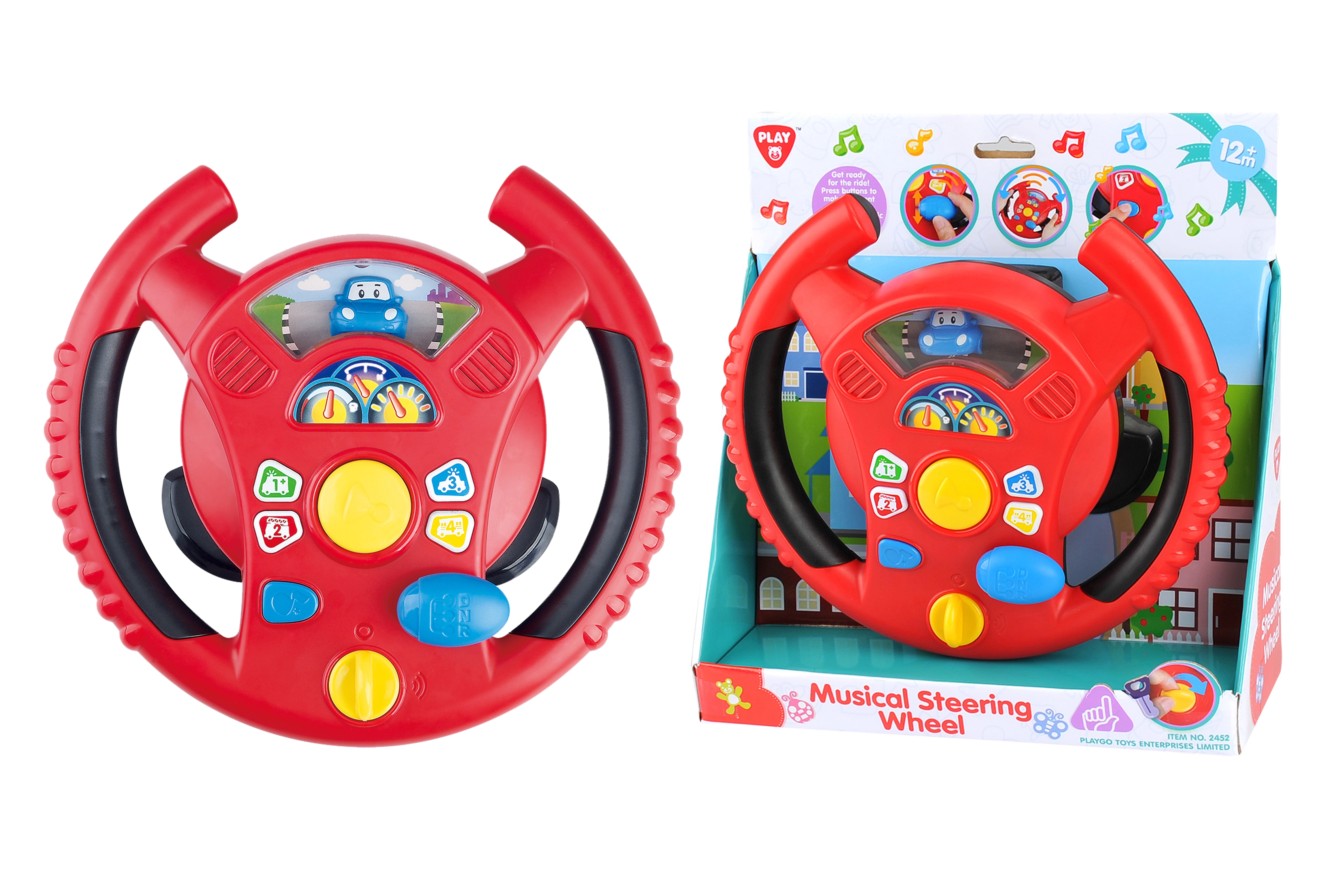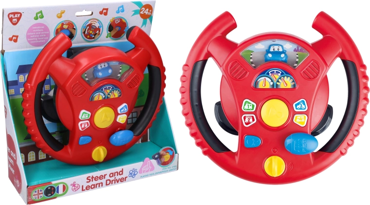 Το διαδραστικό τιμόνι Playgo προσφέρει στα παιδιά διασκεδαστικό παιχνίδι ρόλων οδήγησης σε μια μίνι πόλη. Ο περιστροφικός διακόπτης στο κάτω μέρος του τιμονιού χρησιμεύει για την ενεργοποίηση, στο κέντρο θα βρείτε την κόρνα, στα δεξιά τον επιλογέα για ήχους οδήγησης και στην στεφάνη του τιμονιού μικρά κουμπιά με τόνους και μελωδίες. Τα παιδιά θα απολαύσουν ρεαλιστικά εφέ που θυμίζουν αληθινό αυτοκίνητο, ενώ αναπτύσσουν τον συντονισμό και τη φαντασία.