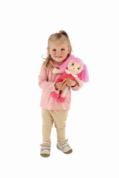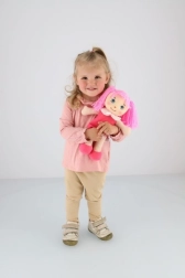 Τα ροζ μαλλάκια, το φορεματάκι και το φιλικό χαμόγελο ενθαρρύνουν τη φαντασία και υποστηρίζουν τη συναισθηματική ανάπτυξη του παιδιού.