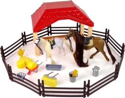 Το σετ περιλαμβάνει εργαλεία απαραίτητα για την καθημερινή συντήρηση της φάρμας και του στάβλου - τρίκυκλο, πιρούνα, σανό, ποτίστρες και άλλα.