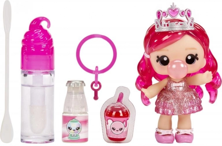 Με το σετ YummyLand, το μακιγιάζ γίνεται δημιουργικό παιχνίδι. Άνοιξε το σωληνάριο, πρόσθεσε άρωμα από το μπουκαλάκι σε στυλ λεμονάδας, ανάμειξε χρώμα από το κυπελλάκι Bubble tea, κλείσε και ανακίνησε – και το δικό σου lip gloss είναι έτοιμο. Η κούκλα Bianca Bubble Gum με ροζ μαλλιά και λαμπερό φόρεμα είναι αρωματισμένη, έχει αποσπώμενο outfit και προσαρμόζεται εύκολα σε σακίδιο ή κλειδιά.
