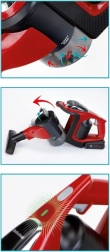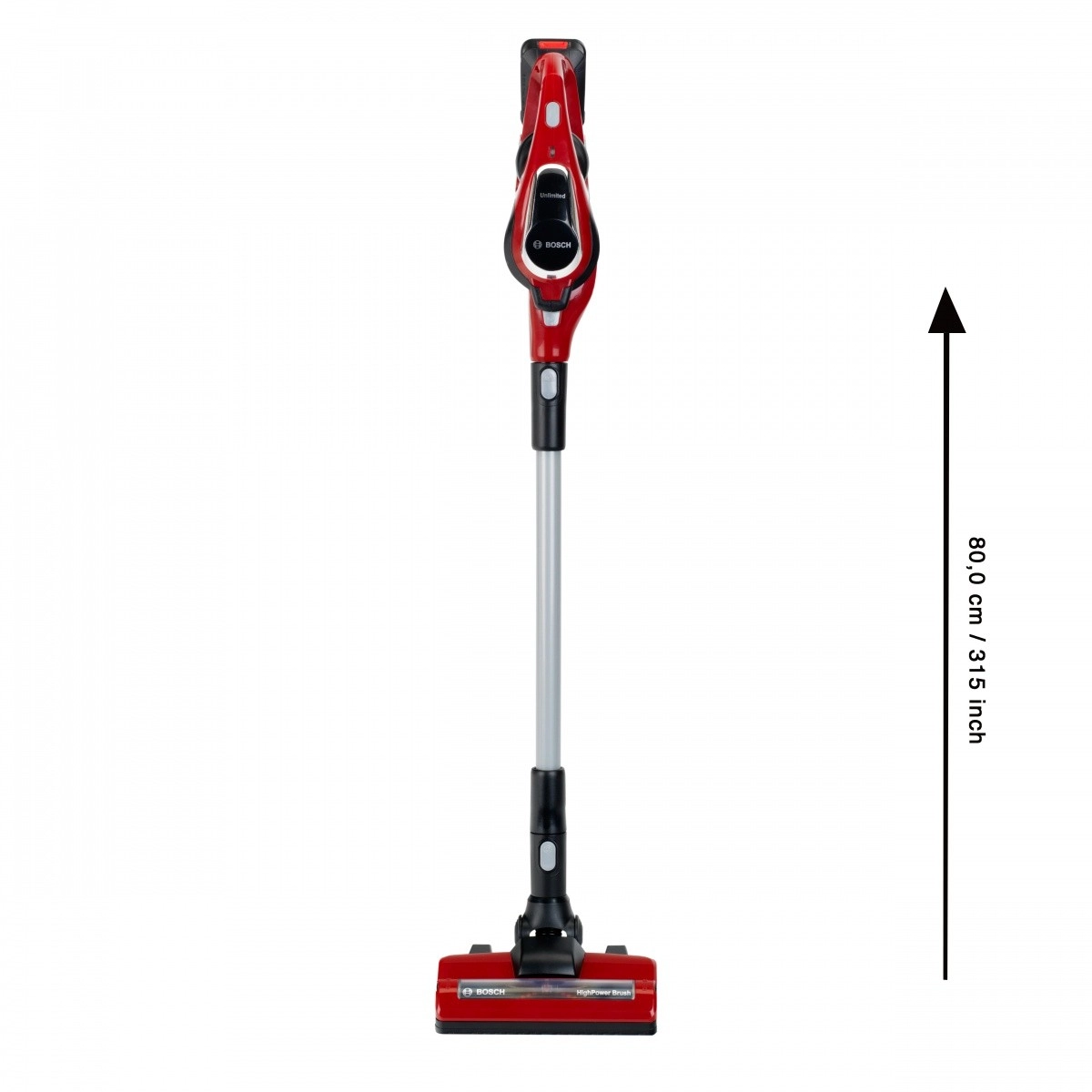 Η παιδική σκούπα Bosch Unlimited είναι σε κόκκινο χρώμα με μαύρα στοιχεία και γκρίζο σωλήνα, εξασφαλίζοντας αυθεντική εμφάνιση. Διαθέτει πράσινη ενδεικτική λυχνία LED που δείχνει ότι είναι ενεργή και κινούμενη κεφαλή βούρτσας δαπέδου με περιστρεφόμενο κύλινδρο για πιο αποτελεσματική συλλογή ρύπων.