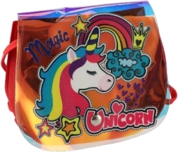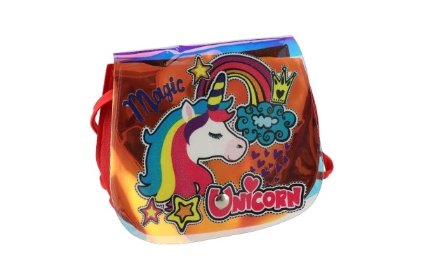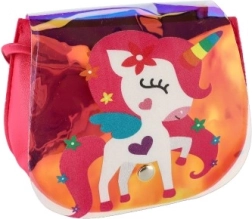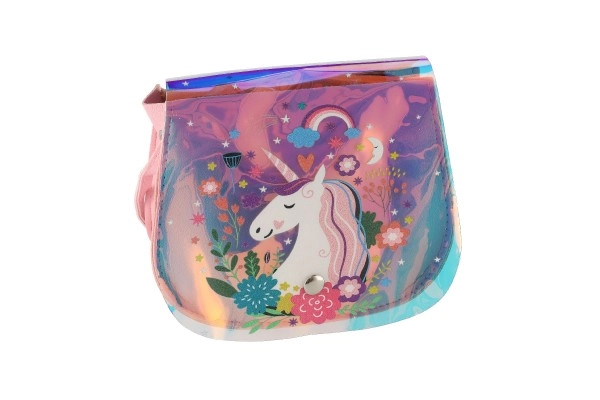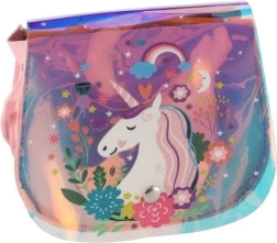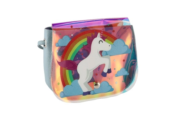 Η τσάντα είναι διακοσμημένη με ήρεμα μοτίβα μονόκερων και ουράνιου τόξου, ενισχύοντας τη παιδική φαντασία και τη διάθεση για παιχνίδι.