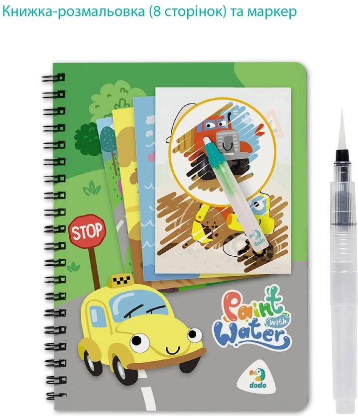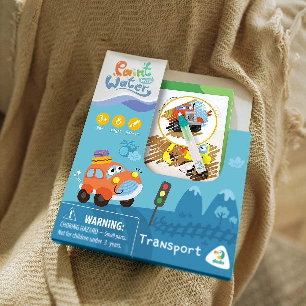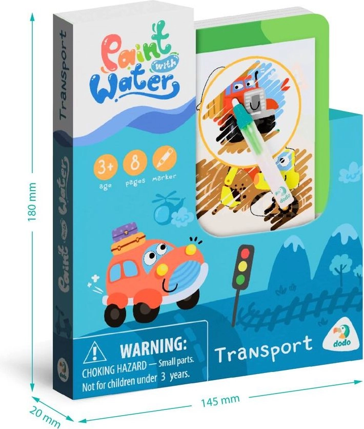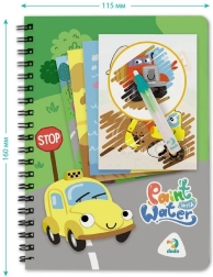 Δημιουργικό μπλοκ με θέματα μεταφορών που προσφέρει ατελείωτη διασκέδαση: γεμίστε το πινέλο νερού, περάστε το πάνω από τη σελίδα και δείτε να εμφανίζονται έντονα χρώματα και λεπτομέρειες αυτοκινήτων, τρένων ή αεροπλάνων. Όταν στεγνώσει, οι εικόνες επιστρέφουν στην αρχική τους κατάσταση και τα παιδιά μπορούν να ζωγραφίσουν ξανά.