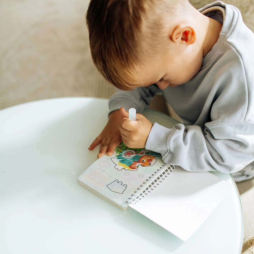 Η σπιράλ βιβλιοδεσία διευκολύνει το γύρισμα των σελίδων, ενώ το συμπαγές μέγεθος 12 × 14 εκ. είναι ιδανικό για το σακίδιο. Η δραστηριότητα αναπτύσσει τη λεπτή κινητικότητα, τον συντονισμό ματιού–χεριού και την δημιουργικότητα χωρίς κίνδυνο λεκέδων.