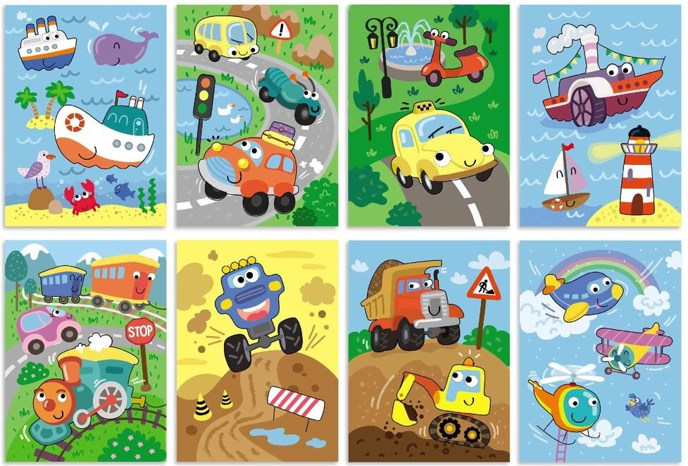 Πολύχρωμα μέσα μεταφοράς για μάθηση και διασκέδαση