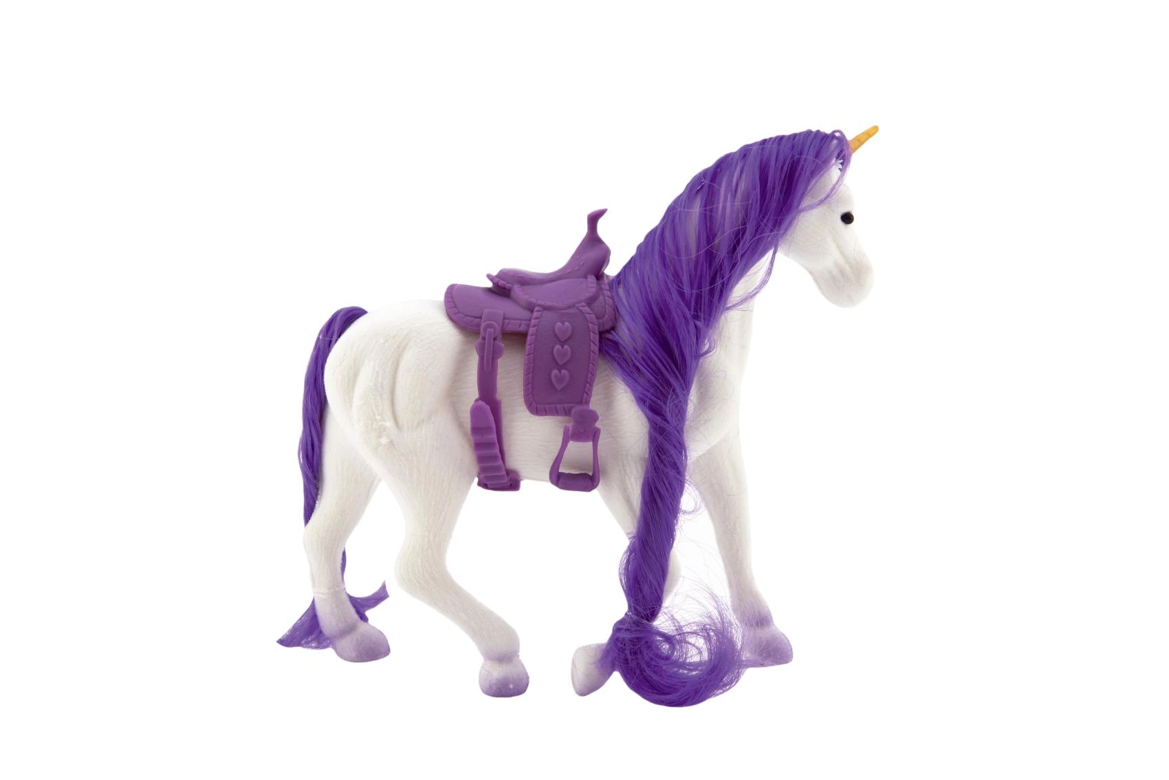 Ανακαλύψτε τη μαγεία της φροντίδας του δικού σας μονόκερου. Αυτός ο πλαστικός μονόκερος με απαλή επιφάνεια τύπου fleece διαθέτει πλούσια χαίτη και ουρά, που μπορούν να χτενίζονται και να διαμορφώνονται επανειλημμένα. Χάρη στη σέλα είναι έτοιμος για κάθε περιπέτεια και φανταστικές βόλτες.