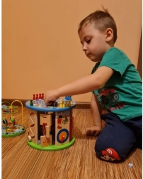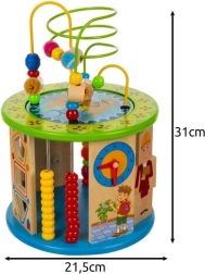 Αυτός ο δημιουργικός κύβος έχει σχεδιαστεί για μικρούς εξερευνητές και προσφέρει 11 διαφορετικές δραστηριότητες σε όλες τις πλευρές, συμπεριλαμβανομένης της επάνω επιφάνειας. Τα παιδιά εξασκούν την αναγνώριση χρωμάτων και σχημάτων, μαθαίνουν να μετρούν με το αριθμητήριο, κατανοούν την έννοια του ρολογιού και βελτιώνουν τον οπτικοκινητικό συντονισμό χάρη στον λαβύρινθο με χάντρες και άλλα διαδραστικά στοιχεία.