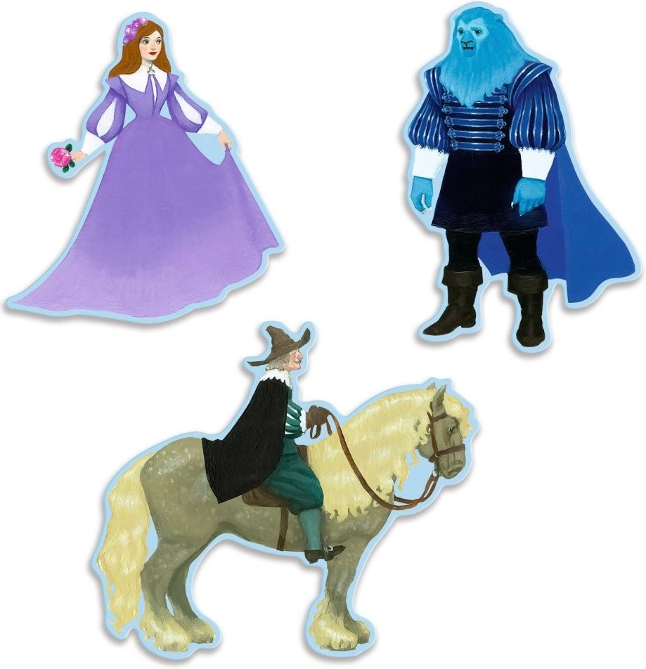 Με τη συναρμολόγηση του παζλ αποκαλύπτεται μια εικονογραφημένη παραμυθένια ιστορία της Πεντάμορφης και του Τέρατος σε στιλ κόμικ.