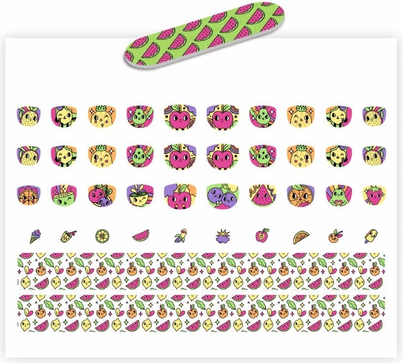 DJECO Αυτοκόλλητα νυχιών Φρούτα επιτρέπουν στα παιδιά να δημιουργήσουν ένα όμορφο μανικιούρ χωρίς βερνίκι νυχιών. Το σετ είναι διασκεδαστικό, εύκολο στη χρήση και φιλικό προς τα παιδικά νύχια.