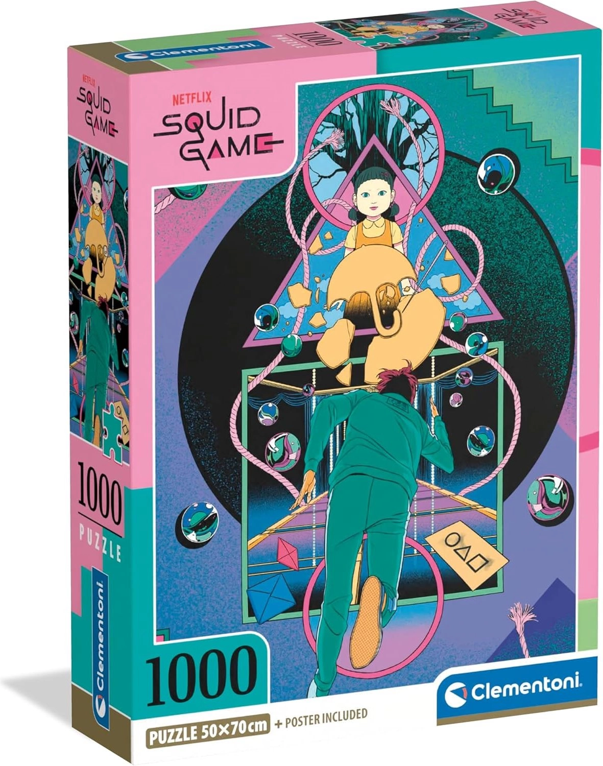 Απολαύστε ώρες διασκέδασης με το ποιοτικό παζλ CLEMENTONI, εμπνευσμένο από το φαινόμενο Squid Game. Αυτό το παζλ με 1000 κομμάτια προσφέρει μια εξαιρετική πρόκληση και, μόλις ολοκληρωθεί, δημιουργεί μια εντυπωσιακή εικόνα διαστάσεων 50 × 70 cm.