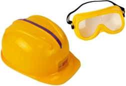 Κίτρινο κράνος και διάφανα γυαλιά προσφέρουν προσομοίωση προστασίας για ασφαλές και ρεαλιστικό παιχνίδι.