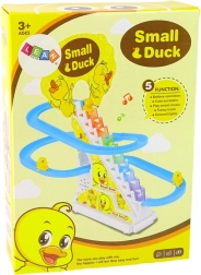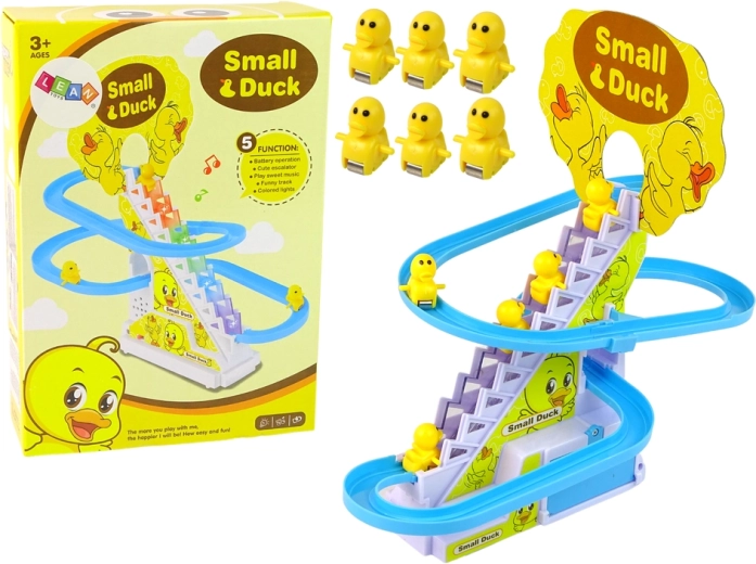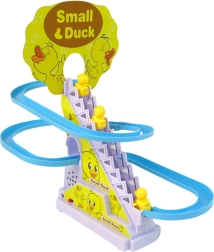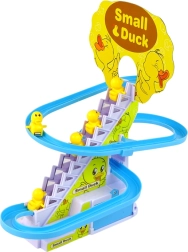 Η διασκεδαστική και εκπαιδευτική τσουλήθρα με παπάκια βοηθά τα παιδιά να αναπτύξουν οπτική αντίληψη, αναγνώριση χρωμάτων και ήχων και συντονισμό κινήσεων. Μετά την απλή συναρμολόγηση και την τοποθέτηση μπαταριών, τα παπάκια ανεβαίνουν τα σκαλάκια και στη συνέχεια κατεβαίνουν γρήγορα από την τσουλήθρα, ενώ πολύχρωμα φώτα και μουσική δημιουργούν μια χαρούμενη ατμόσφαιρα. Οι λείες φόρμες χωρίς αιχμηρές άκρες εξασφαλίζουν ασφαλές παιχνίδι υπό την επίβλεψη γονέων.
