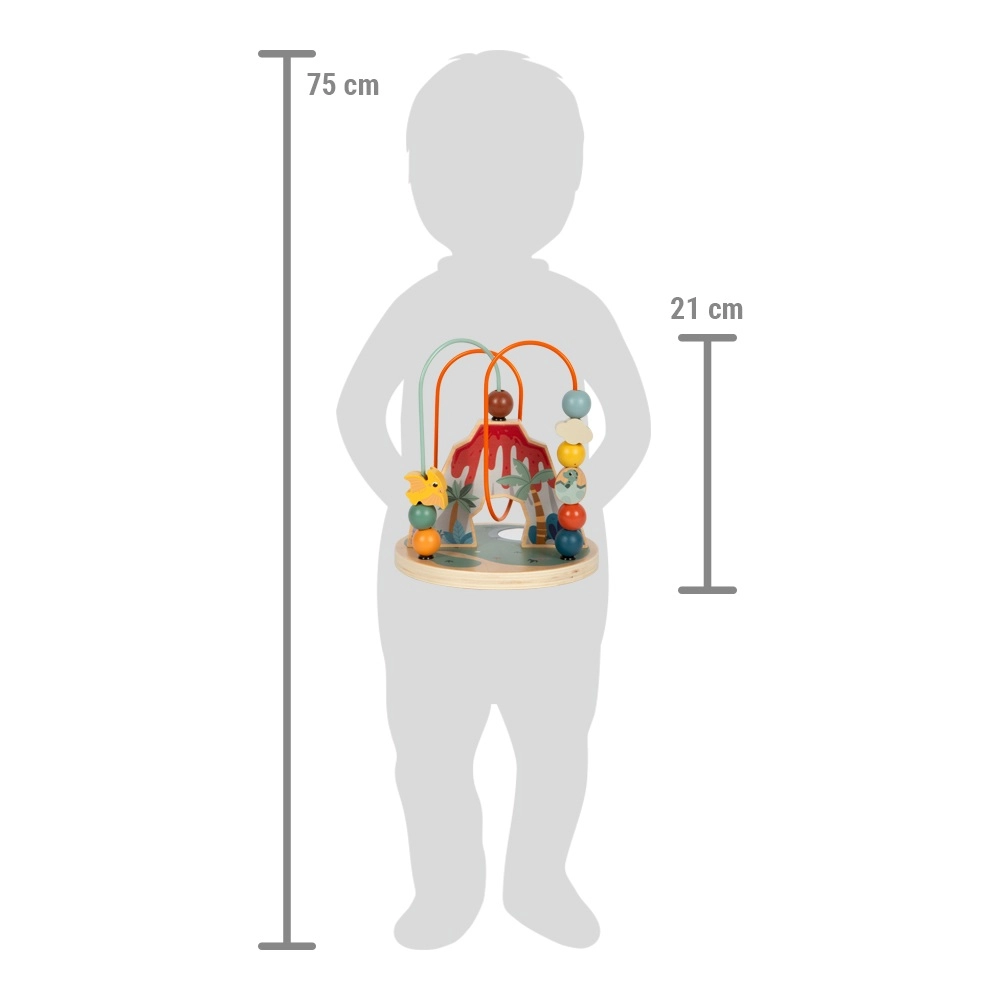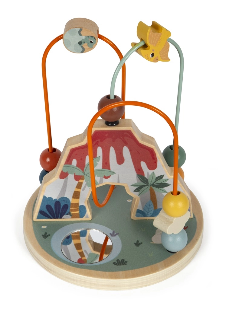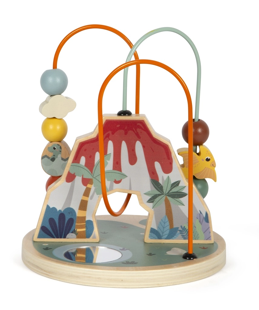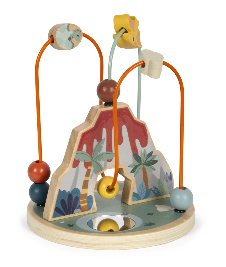 Αυτός ο λαβύρινθος με χάντρες με θέμα τους δεινόσαυρους αποτελεί ιδανικό παιχνίδι για την ανάπτυξη των παιδιών. Τα μαθαίνει τον συντονισμό χεριού-ματιού και ενισχύει τη δημιουργικότητα, ενώ ξεχωρίζει με τη μοναδική παράσταση ηφαιστειακού κρατήρα. Το παιχνίδι διαθέτει δύο πολύχρωμους βρόχους με ποικίλες χάντρες και έναν κεντρικό καθρέφτη στη βάση, ώστε όλα να φαίνονται από διαφορετική γωνία.