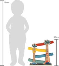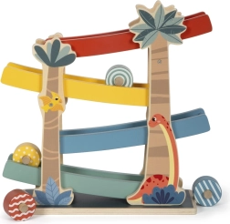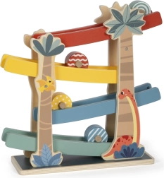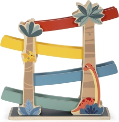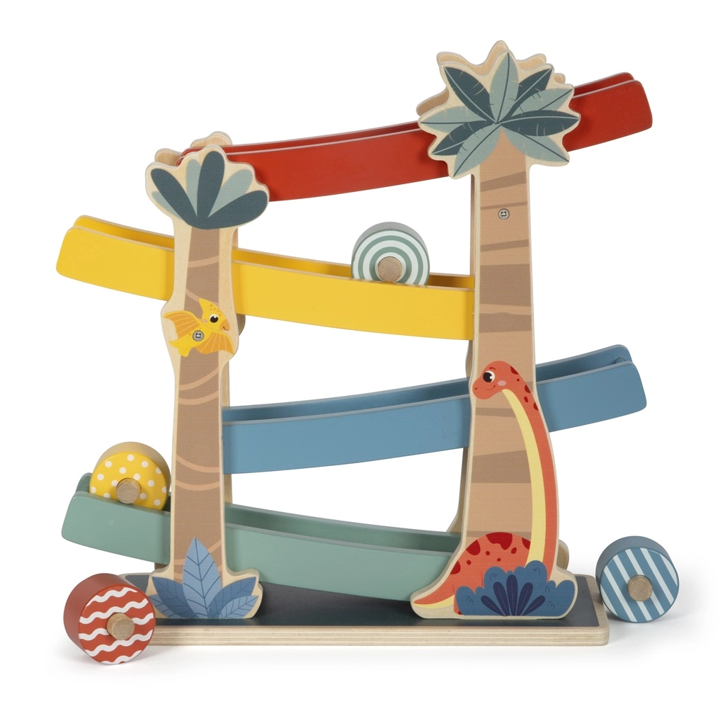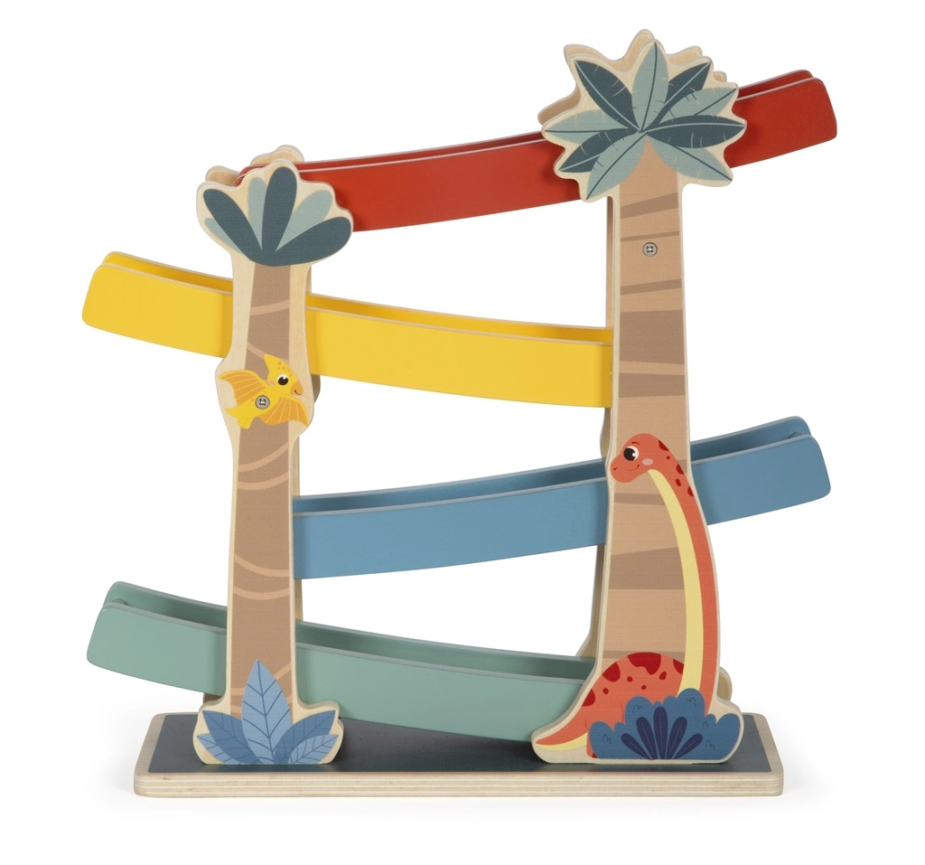 Αυτή η ξύλινη πίστα με θέμα δεινοσαύρων είναι ένα ιδανικό διαδραστικό παιχνίδι για παιδιά. Μαζί με τους πολύχρωμους δίσκους με σχέδια, που κυλούν στις ράμπες, προσφέρει έναν διασκεδαστικό τρόπο μάθησης για την κίνηση και τη βαρύτητα. Χαρακτηριστικά προϊόντος: