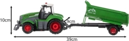 - Τρακτέρ, ρυμουλκούμενο, τηλεχειριστήριο, 2× επαναφορτιζόμενη μπαταρία, καλώδιο φόρτισης USB, χρωματιστό κουτί με παράθυρο, καφέ κουτί μεταφοράς