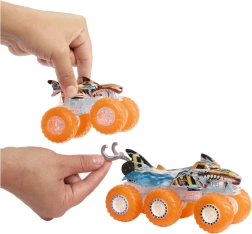 - Φορτώστε δύο οχήματα Hot Wheels Power Smashers Monster Trucks κλίμακας 1:64 πάνω σε δύο μεγάλα ρυμουλκά Hot Wheels Monster Trucks Power Smashers και κυριαρχήστε στις συγκρούσεις και τις καταρρεύσεις.