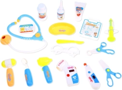 Στηθοσκόπιο, θερμόμετρο, ωτοσκόπιο, πιεσόμετρο, σύριγγα, ψαλίδι, νυστέρι, γυαλιά και άλλα αξεσουάρ – όλα για ένα ολοκληρωμένο παιχνίδι γιατρού.
