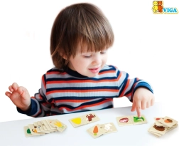 Η μάθηση μέσα από το παιχνίδι είναι η πιο διασκεδαστική. Σε αυτό το σετ, τα παιδιά ταιριάζουν τα σωστά ζευγάρια – ένα χαριτωμένο ζώο και την τροφή που προτιμά. Χάρη στα έντονα χρώματα και τις κατανοητές εικονογραφήσεις, κατανοούν γρήγορα τις συσχετίσεις και αναπτύσσουν φυσικά το λεξιλόγιο, την αναγνώριση και το λογικό συλλογισμό.