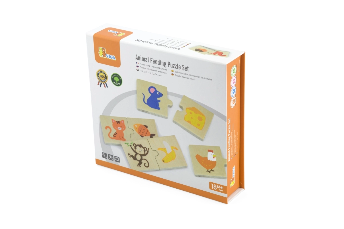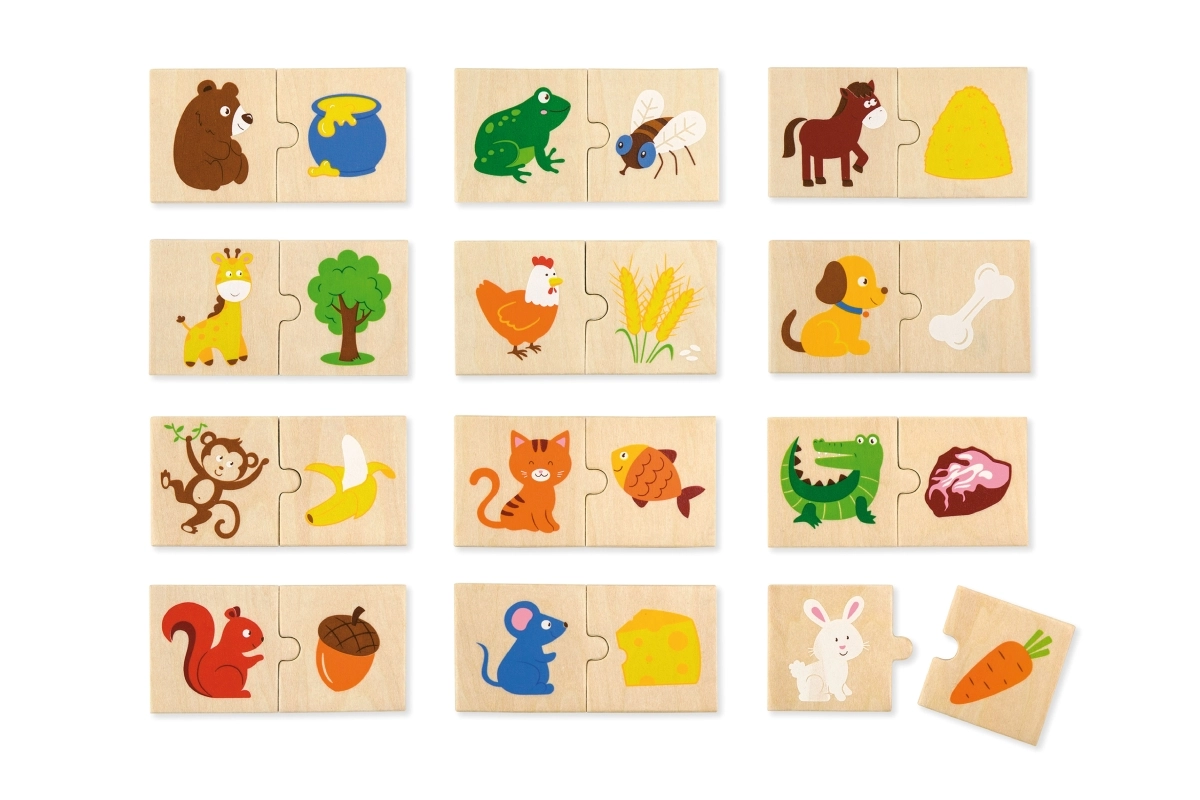 Ανακαλύψτε ένα διασκεδαστικό και εκπαιδευτικό ξύλινο παζλ, όπου τα παιδιά ταιριάζουν τα ζώα με την αγαπημένη τους τροφή. Το σετ περιλαμβάνει 24 ανθεκτικά ξύλινα κομμάτια με καθαρές, ευδιάκριτες εικόνες, είναι κατασκευασμένο από ποιοτικό ξύλο και βαμμένο με μη τοξικά χρώματα. Ιδανικό για παιδιά από 18 μηνών για την ανάπτυξη λογικής, λεπτής κινητικότητας και συντονισμού χεριού–ματιού.