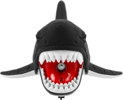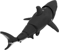 Αυτός ο μαύρος καρχαρίας από ποιοτικό πλαστικό ξεχωρίζει για την ρεαλιστική του εμφάνιση – χαρακτηριστικά λευκά δόντια, μυτερό ραχιαίο πτερύγιο και μακριά ουρά που εξασφαλίζουν «ζωντανή» κίνηση. Το τηλεχειριστήριο υπερύθρων επιτρέπει στα παιδιά να χειρίζονται εύκολα: εμπρός, πίσω, αριστερά και δεξιά. Κατά την κίνηση ο καρχαρίας κουνά την ουρά και τον κορμό, έχει φωτιζόμενα μάτια και μπορεί να εκνεφώνει νερό για ακόμη πιο έντονη εμπειρία παιχνιδιού.