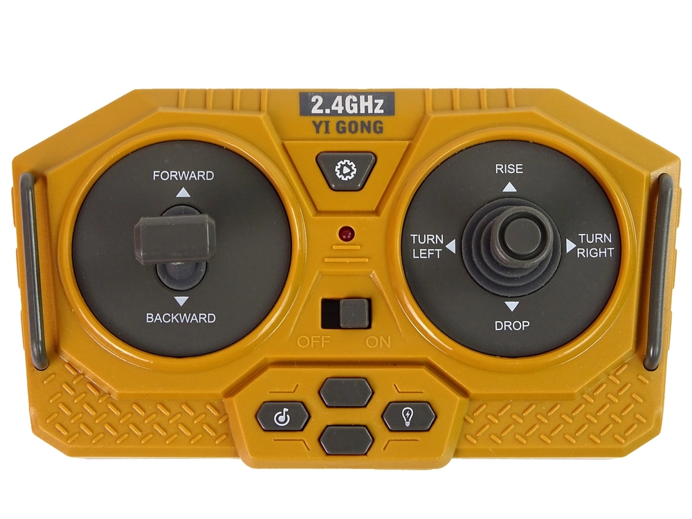 - Κίνηση εμπρός/πίσω, στροφή, περιστροφή 360°, ανύψωση και καθίζηση λεπίδας, φωτεινά και ηχητικά εφέ, λειτουργία επίδειξης