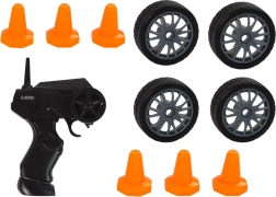 Στη συσκευασία θα βρείτε ανταλλάξιμους τροχούς για drift και κλασική οδήγηση, καθώς και κορίνες για να στήσετε τις δικές σας πίστες. Το σετ περιλαμβάνει επίσης συσσωρευτή 3,7 V και USB φορτιστή, ώστε να ξεκινήσετε σχεδόν αμέσως μετά το άνοιγμα.