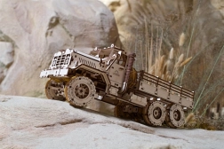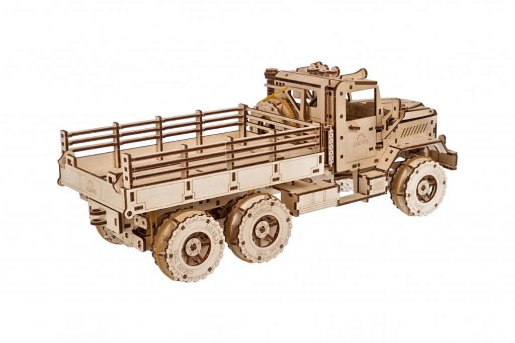 Απολαύστε την κατασκευή του εμβληματικού φορτηγού, εμπνευσμένου από τους θρυλικούς μηχανισμούς 6x6. Ο λεπτομερής κινητήρας κάτω από το ανοιγόμενο καπό, οι λειτουργικές χειρολαβές θυρών, οι ρυθμιζόμενοι καθρέφτες και οι αναδιπλούμενες πόρτες του χώρου φόρτωσης υπογραμμίζουν την αυθεντική όψη και τη λειτουργικότητα του μοντέλου. Ο ελαστικός κινητήρας μεταφέρει την ισχύ μέσω δύο διαφορικών στον εμπρός και πίσω άξονα, ώστε το μοντέλο να κινείται πραγματικά.