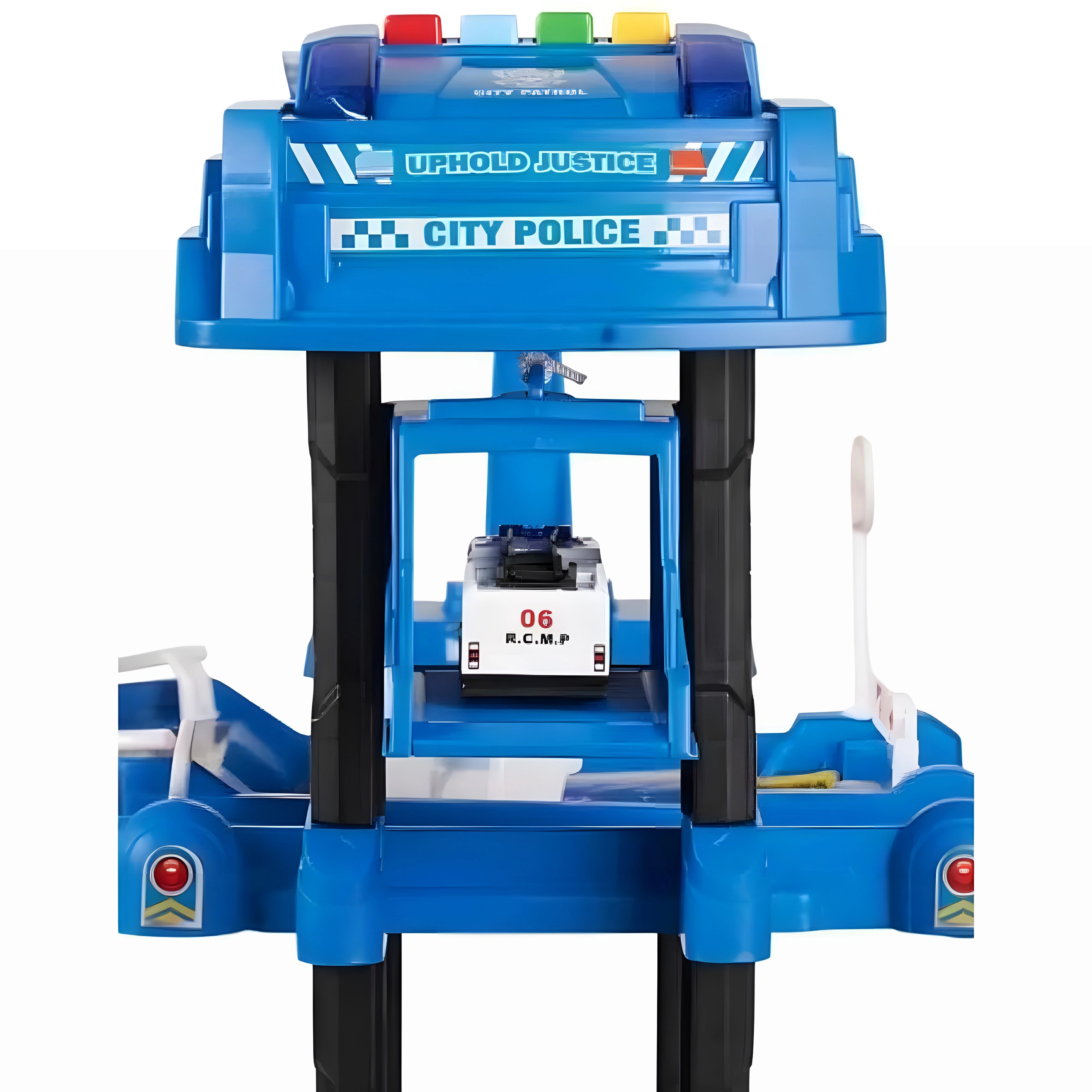 Ανακαλύψτε το πενταώροφο γκαράζ στάθμευσης με αστυνομικό τμήμα, που θα ενθουσιάσει κάθε μικρό οδηγό. Χάρη στις ρεαλιστικές λεπτομέρειες όπως οι ράμπες, οι μπάρες, τα σήματα και το ελικοδρόμιο στην οροφή, τα παιδιά δημιουργούν τις δικές τους ιστορίες και σενάρια. Το διαδραστικό ασανσέρ ανεβάζει τα αυτοκίνητα μέχρι την κορυφή, όπου τα περιμένει περισσότερη δράση.