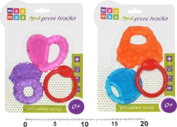 Το σετ περιλαμβάνει δύο μασητικά και ένα πρακτικό δαχτυλίδι σύνδεσης, στο οποίο μπορούν να περαστούν. Παράλληλα αναπτύσσουν τις αισθήσεις και υποστηρίζουν τον συντονισμό χεριού–ματιού καθώς και τη αδρή κινητικότητα. Το μέγεθος 6–9 cm είναι ιδανικό για μικρά παιδιά και για ασφαλή εξερεύνηση του κόσμου με το στόμα.