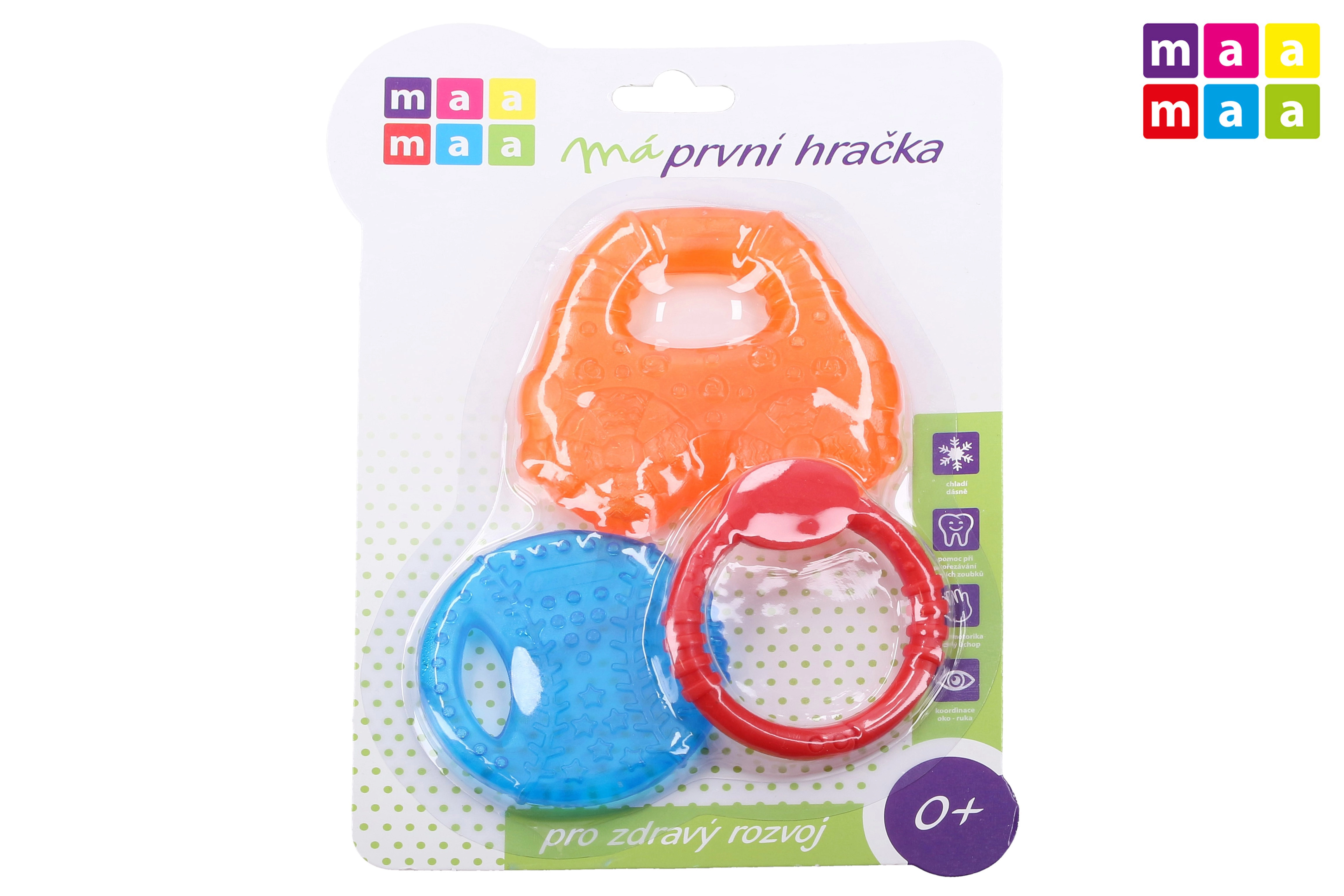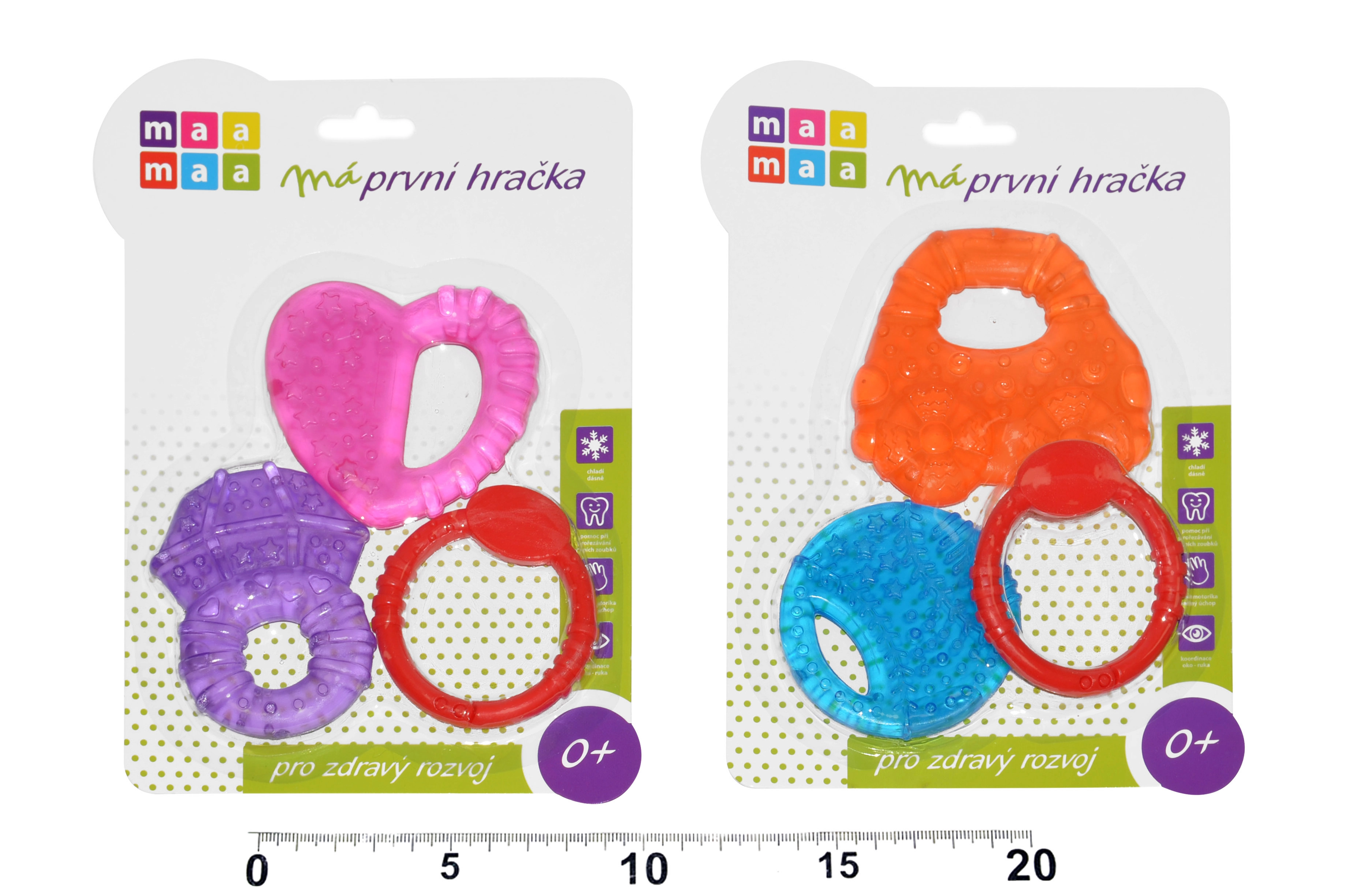 Το σετ δροσερών μασητικών έχει σχεδιαστεί για να ανακουφίζει τα παιδιά κατά την εμφάνιση των πρώτων δοντιών. Μετά την ψύξη στο ψυγείο (περίπου 1 ώρα) το κρύο βοηθά να μειωθεί η υπεραιμία των ούλων και να προληφθούν φλεγμονές, ενώ η ποικιλία στη υφή της επιφάνειας κάνει μασάζ στα ούλα και ενθαρρύνει το φυσικό δάγκωμα. Χάρη στην ελαφριά κατασκευή και το ευχάριστο υλικό, τα μασητικά κρατιούνται εύκολα ακόμη και από τα πιο μικρά χεράκια.