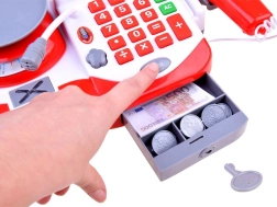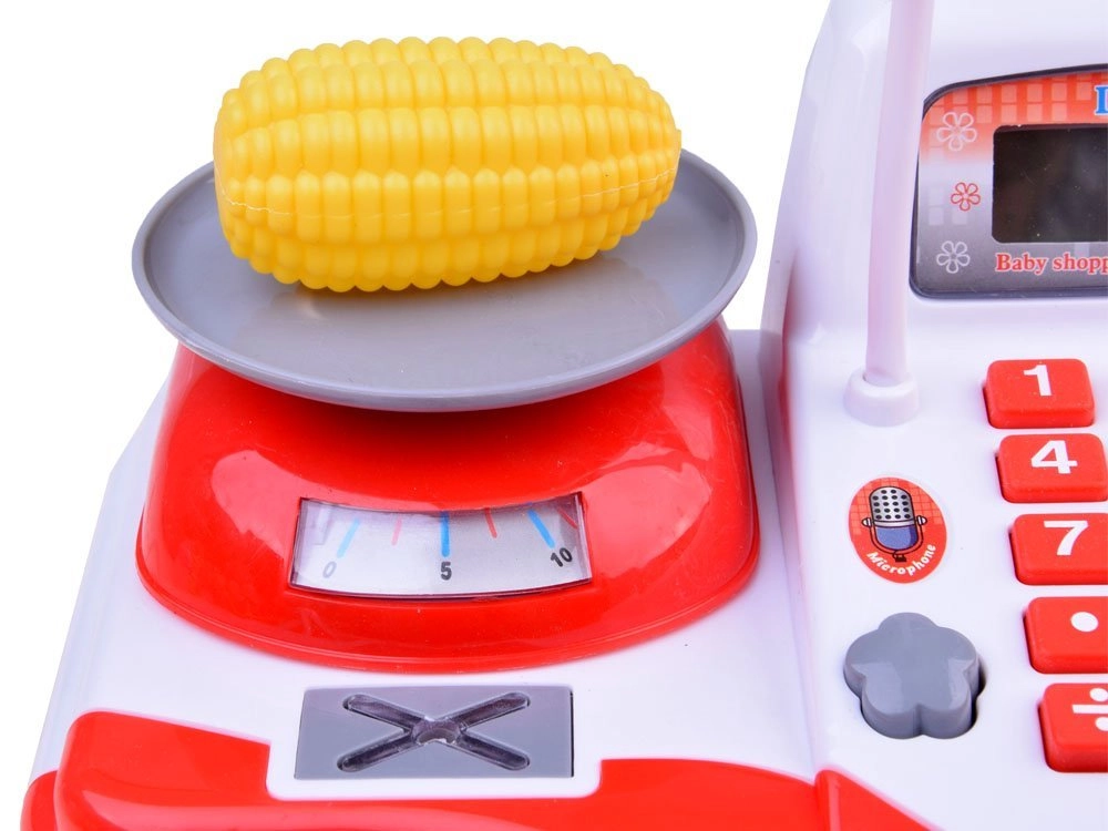 Αυτό το παιδικό ταμείο προσφέρει ό,τι χρειάζεται ο μικρός πωλητής: λειτουργική αριθμομηχανή για βασικούς υπολογισμούς, σκάνερ με φως και ήχο, ζυγαριά για τα προϊόντα και μικρόφωνο για ανακοινώσεις. Το συρτάρι χρημάτων ανοίγει με το κουμπί “open” και μπορεί να κλειδωθεί. Χάρη στον πλούσιο εξοπλισμό, τα παιδιά μιμούνται εύκολα πραγματικές αγορές.