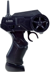 Το πακέτο περιλαμβάνει ό,τι χρειάζεστε: αυτοκίνητο, πιστολοειδή πομπό, μπαταρία 3,7 V, φορτιστή, ανταλλακτικά ελαστικά και 6 κώνους για τη χάραξη της διαδρομής. Ο χειρισμός είναι διαισθητικός – κίνηση εμπρός/πίσω και στροφή δεξιά/αριστερά, ώστε να μπείτε γρήγορα στον ρυθμό.