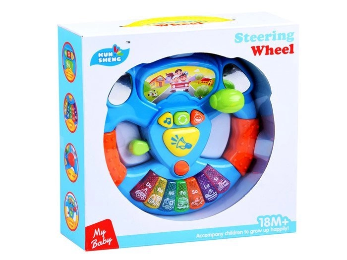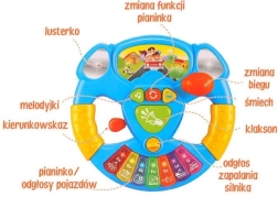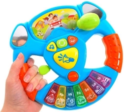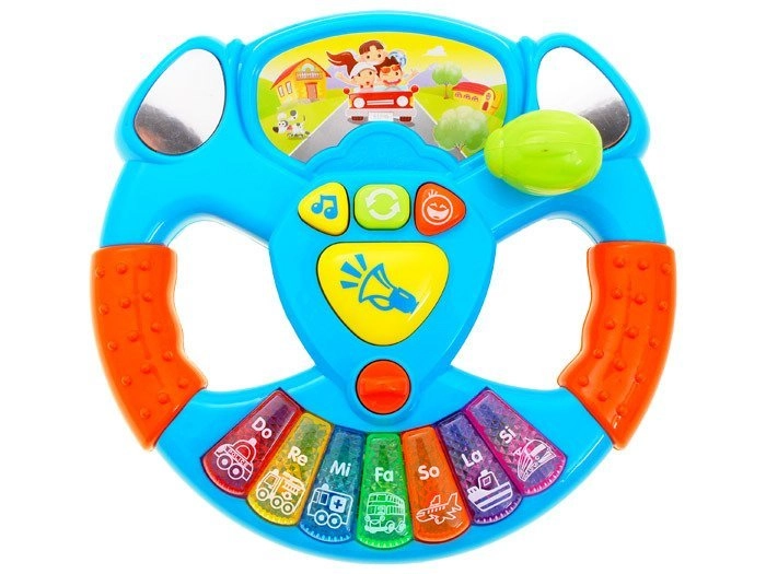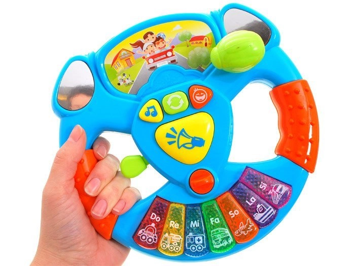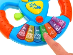 Το διαδραστικό μουσικό τιμόνι είναι ιδανικός σύντροφος για διαδρομές και για παιχνίδι στο σπίτι. Τα παιδιά νιώθουν σαν αληθινοί οδηγοί χάρη στα αυθεντικά εφέ και τον εύκολο χειρισμό. Τα πολύχρωμα πλήκτρα Ντο–Ρε–Μι και άλλες νότες ενεργοποιούν μελωδίες και ήχους μεταφορικών μέσων που αναπτύσσουν ακοή, συντονισμό και ρυθμό.