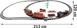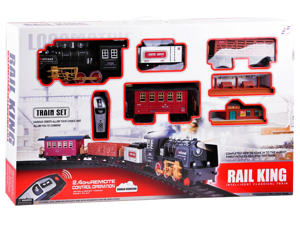 Το σετ περιλαμβάνει ατμομηχανή και 3 βαγόνια, 22 κομμάτια ραγών, σταθμό, αίθουσα αναμονής, δεντράκια, επαναφορτιζόμενη μπαταρία και καλώδιο USB. Αφού συναρμολογηθεί, αποκτάτε μια μεγάλη διαδρομή μεγέθους 213 × 120 cm, ιδανική για μεγάλες διαδρομές και δημιουργική κατασκευή.
