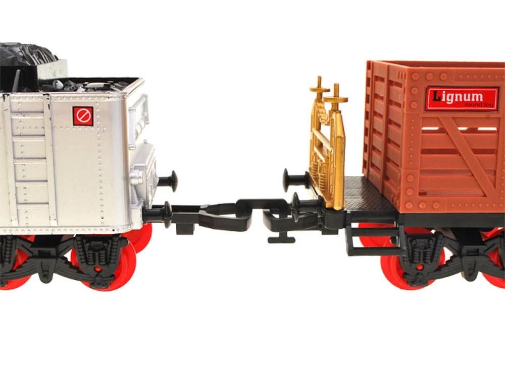 Αυτή η προσεγμένα κατασκευασμένη ηλεκτρική σιδηροτροχιά θα ενθουσιάσει μικρούς και μεγάλους φίλους των τρένων. Η ατμομηχανή κατά την κίνηση φωτίζει με μπροστινό φως, παράγει ήχους πραγματικού τρένου και, μετά την προσθήκη νερού, δημιουργεί εφέ καπνού από την καμινάδα. Με τον τηλεχειρισμό έχετε πάντα τον έλεγχο της ταχύτητας και της κατεύθυνσης.