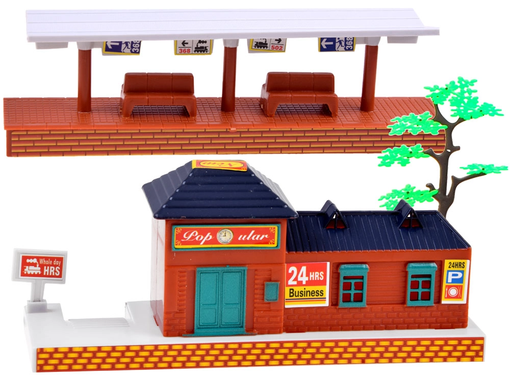 Συνθέστε διαδρομή 213 × 120 cm από 22 κομμάτια ραγών, προσθέστε σταθμό, αίθουσα αναμονής και δέντρα και δημιουργήστε τη δική σας σιδηροδρομική σκηνή.