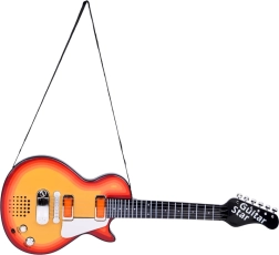 Αυτή η στιλάτη ηλεκτρική κιθάρα σε ενεργητικό πορτοκαλομαύρο χρώμα είναι εξαιρετική επιλογή για παιδιά που αγαπούν τη μουσική. Οι μεταλλικές χορδές αντιδρούν στην αφή και, σε συνδυασμό με τα πορτοκαλί φωτάκια που αναβοσβήνουν κάτω από τις χορδές, δημιουργούν εντυπωσιακό σόου σε κάθε παίξιμο.