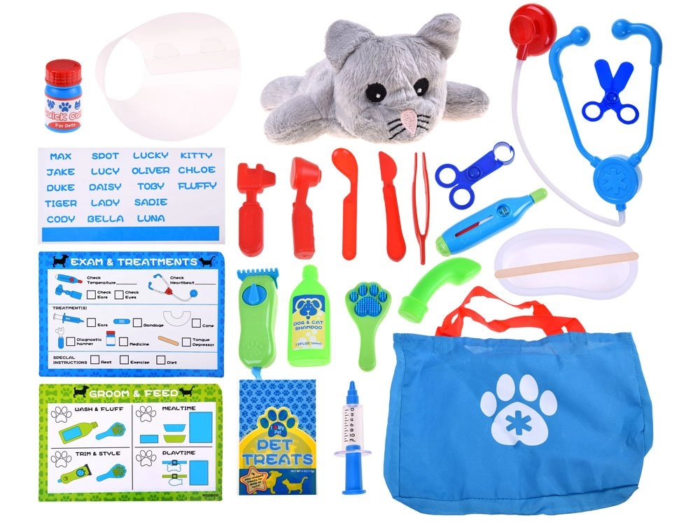 Το εκπαιδευτικό κτηνιατρικό σετ για παιδιά προσφέρει όλα όσα χρειάζεται ένας μικρός κτηνίατρος για τη φροντίδα λούτρινων ασθενών, όπως γάτες και σκύλοι. Με 23 διαφορετικά αντικείμενα, αυτό το σετ είναι ιδανικό για την ενίσχυση της δημιουργικότητας και της μάθησης μέσω του παιχνιδιού. Όλα τα εργαλεία είναι κατασκευασμένα από ποιοτικό πλαστικό, διασφαλίζοντας την ασφάλεια και την ανθεκτικότητά τους.