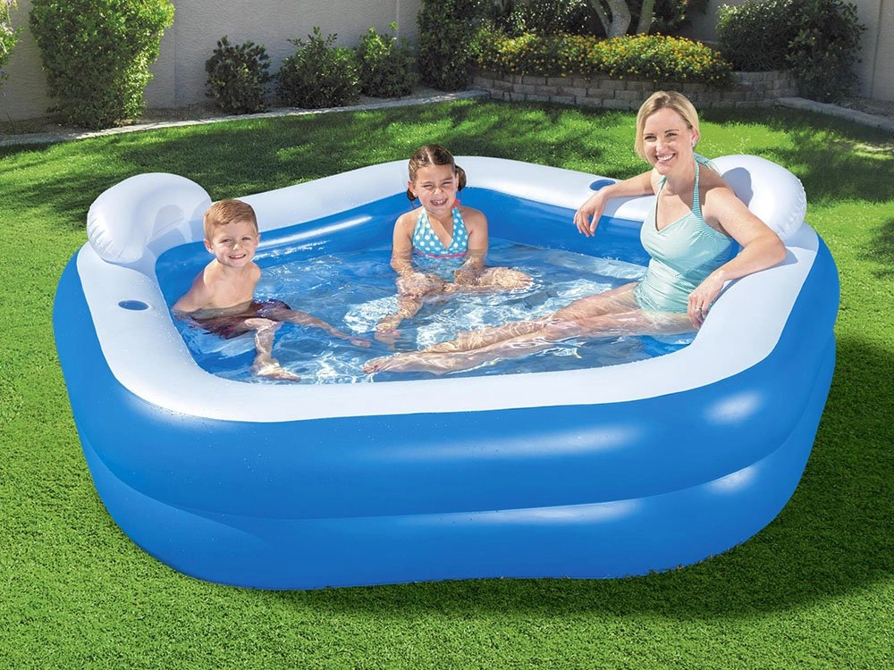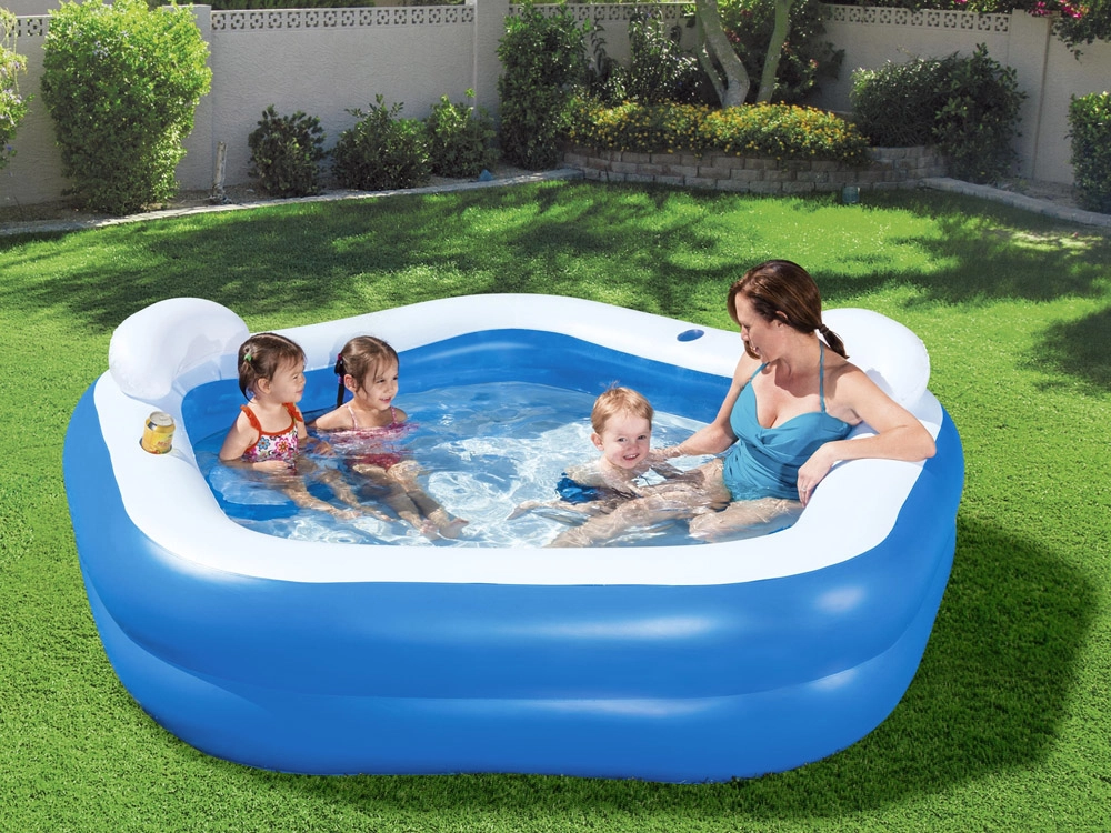Η οικογενειακή φουσκωτή πισίνα Bestway είναι ιδανική για χαλάρωση στις ζεστές καλοκαιρινές μέρες. Στήνεται γρήγορα και εύκολα – απλώς γεμίστε με νερό και απολαύστε στιγμές ξεγνοιασιάς. Αυτή η μεγάλη πισίνα με μαλακά φουσκωτά τοιχώματα και προσκέφαλα, με ενσωματωμένες θήκες για ποτά, προσφέρει άνεση για όλη την οικογένεια.